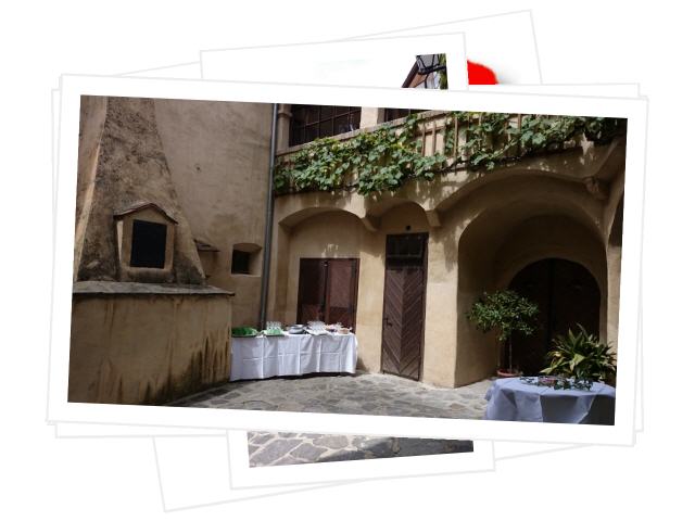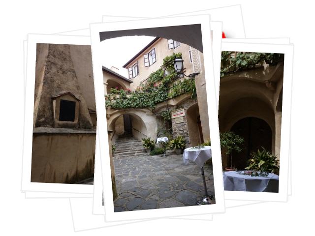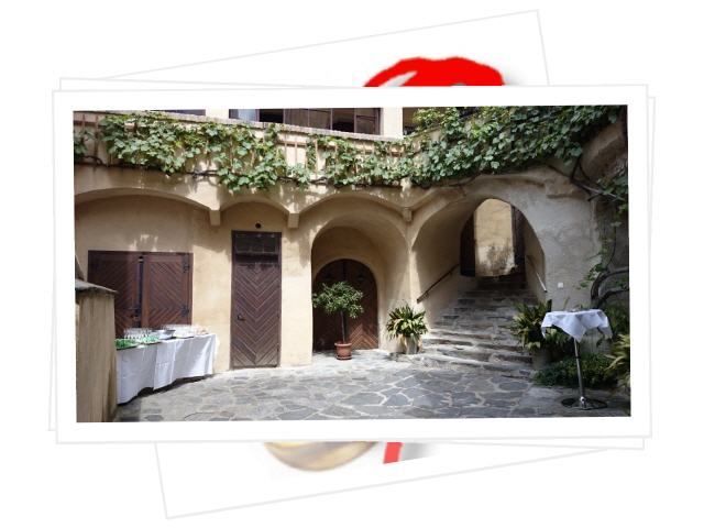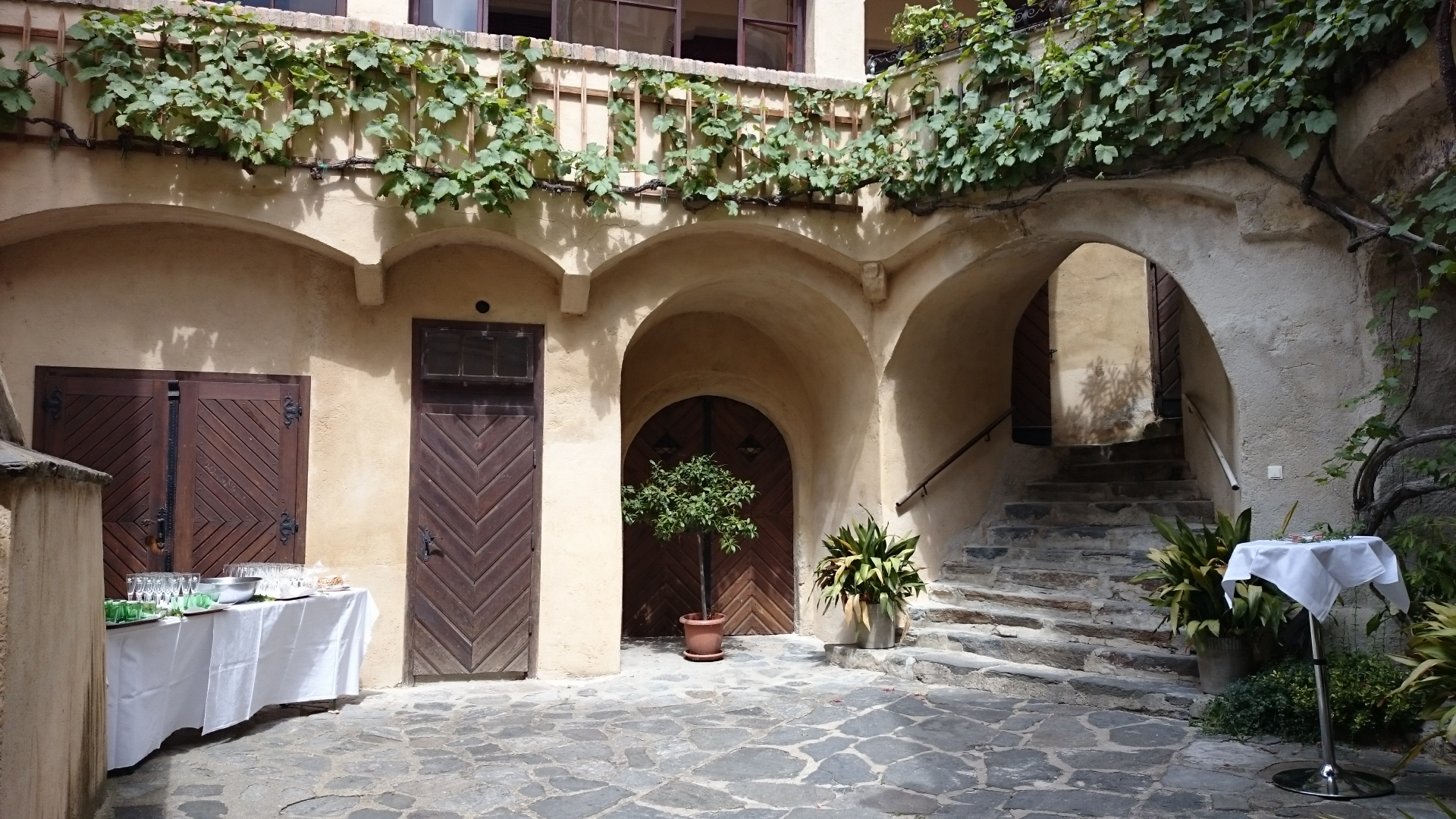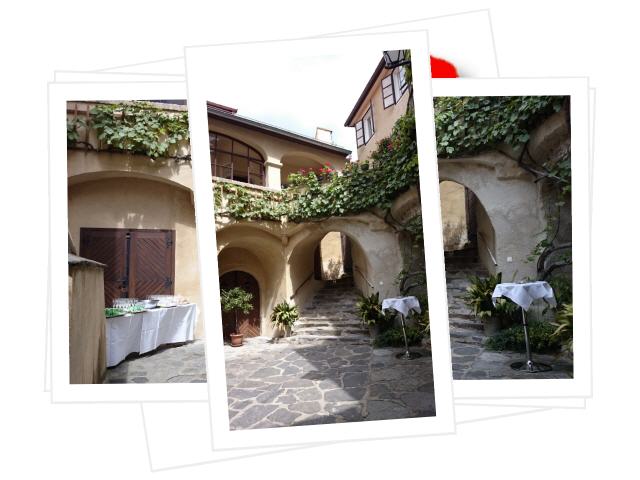 Im romantischen Innenhof des Rathauses von Dürnstein. Gerne richten wir Ihre Agape im Anschluss an Ihre Hochzeit im Standesamt in Dürnstein aus.