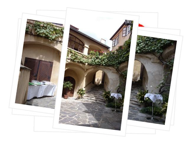Im romantischen Innenhof des Rathauses von Dürnstein. Gerne richten wir Ihre Agape im Anschluss an Ihre Hochzeit im Standesamt in Dürnstein aus. |
